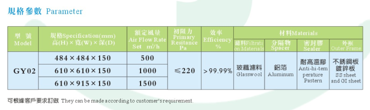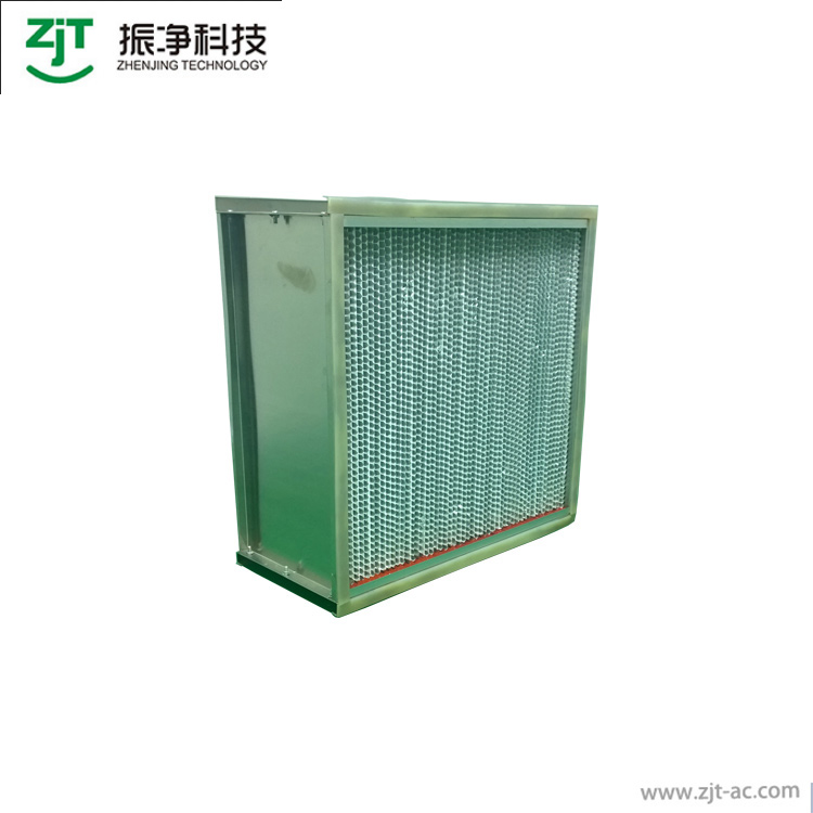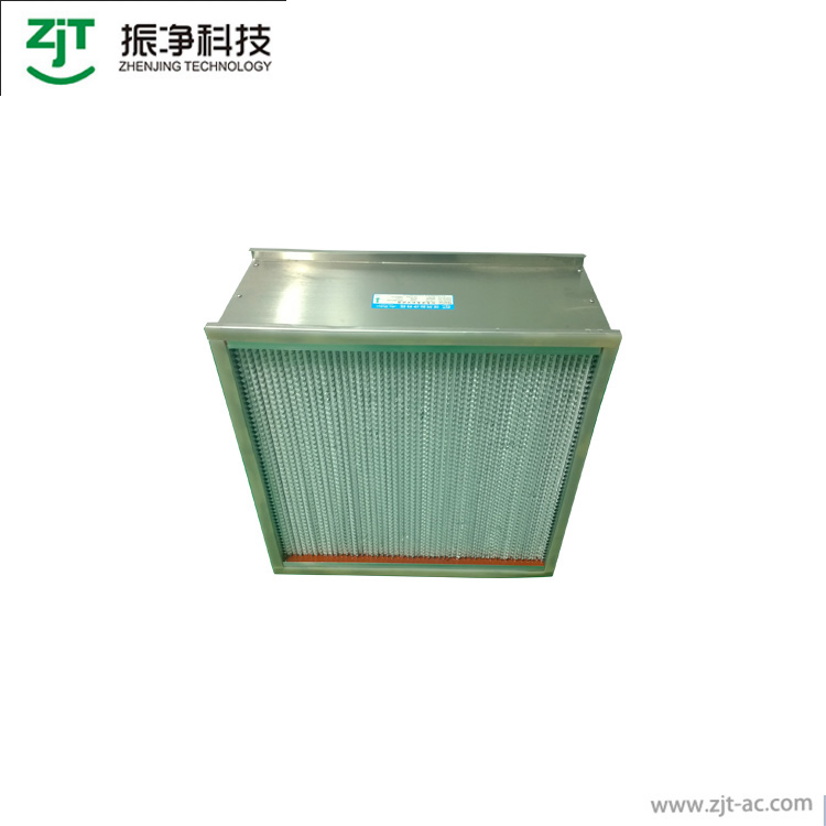 耐高溫高效過濾器使用有隔板設(shè)計,波紋形隔板可以精確地保持褶層間距,在最小阻力下,最大限度地利用濾料,過濾器濾材兩面180褶翻褶形褶層,濾料折彎時有兩道壓痕,使其在隔板的尾端開成鍥形盒式褶層,鍥形盒式褶層可以防止濾料破損。耐高溫型玻璃纖維濾紙;不銹鋼外框、鋁框;密封膠:耐高溫型硅膠;密封墊:硅橡膠;逐臺激光計數(shù)效率:99.99%@0.3um效率等級:H13;耐高溫高效過濾器連續(xù)運(yùn)行溫度300度,最高溫度可達(dá)350度。