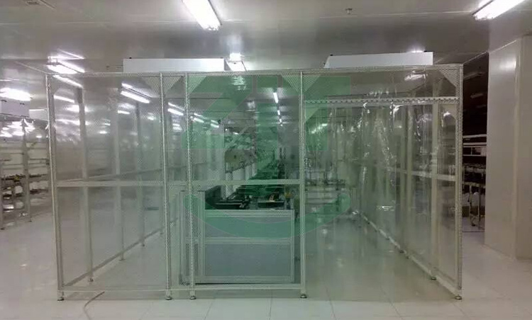 潔凈棚采用工業(yè)鋁材(或不銹鋼方通、鐵方通噴塑)作為框架,風(fēng)機濾網(wǎng)機組(FFU)送風(fēng),四周懸掛防靜電垂簾(或鋼化玻璃),其內(nèi)部凈化級別可達到100-10000級。適用于操作區(qū)內(nèi)局部凈化級別要求高的區(qū)域。