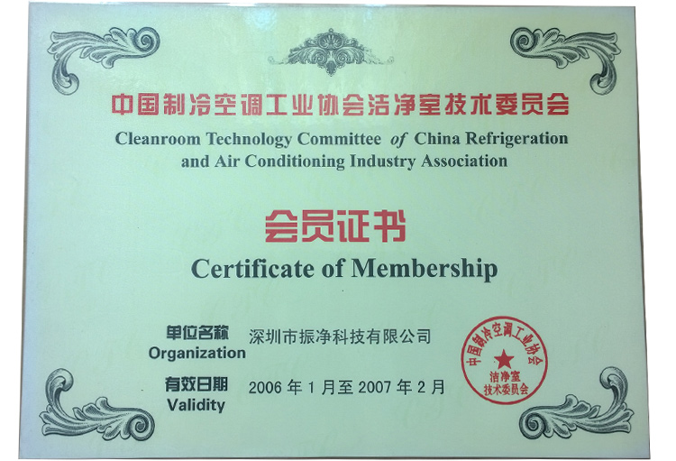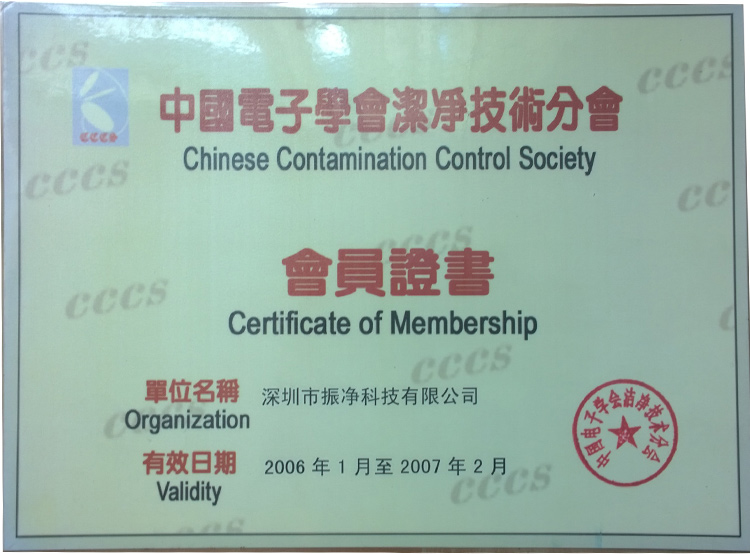 潔凈技術(shù)分會(huì)會(huì)員證書
