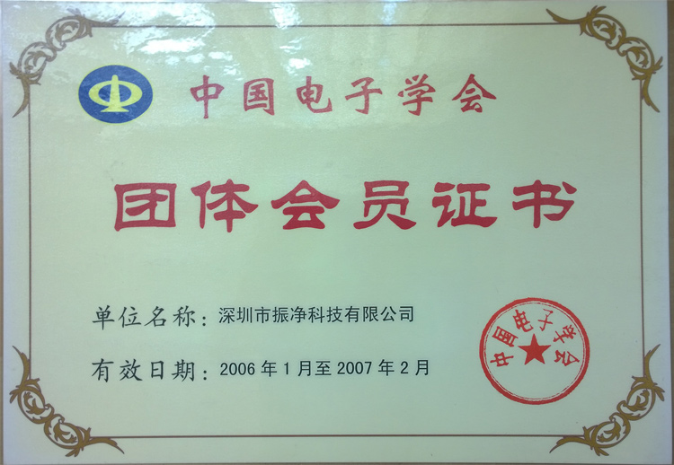 中國(guó)電子學(xué)會(huì)團(tuán)體會(huì)員證書